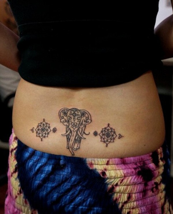 美女后腰图腾大象纹身