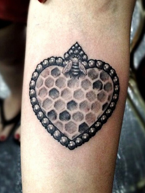 小臂上爱心蜂巢纹身