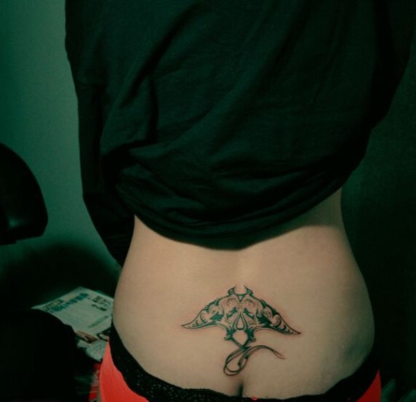 女生后腰上的飞鱼纹身