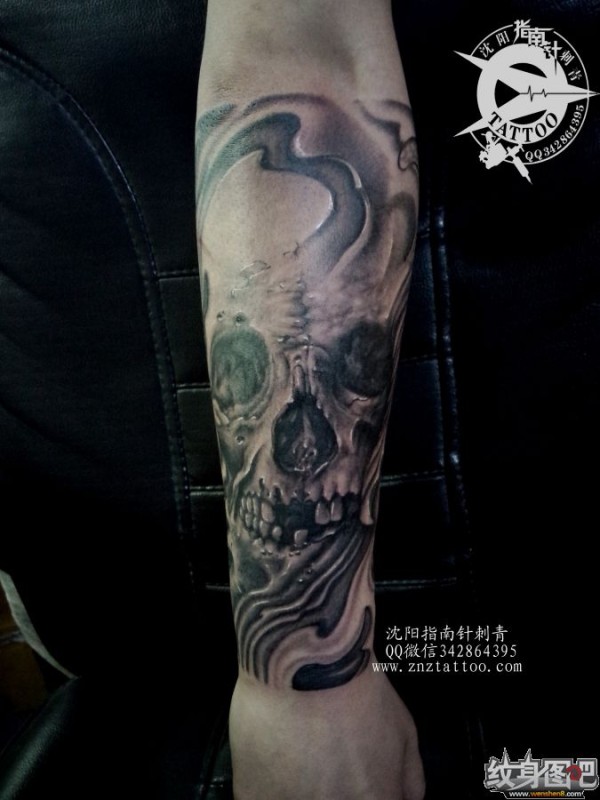 欧美骷髅纹身图案 沈阳指南针刺青作品