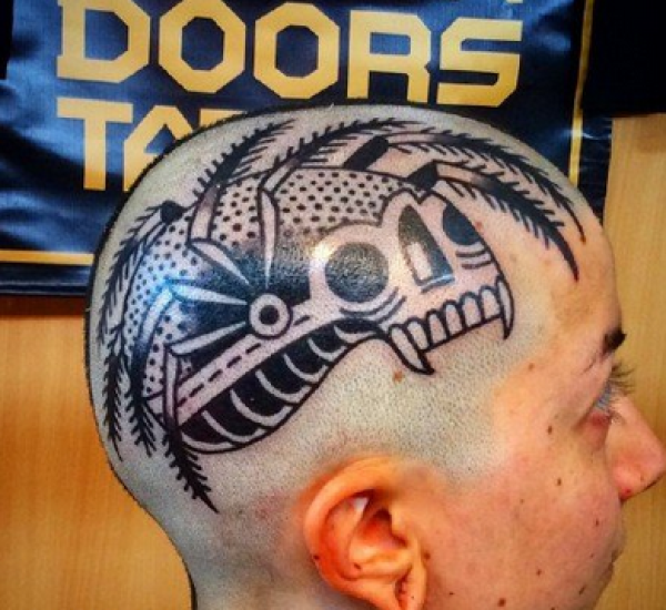 霸气男头部时尚纹身图片_头部纹身图案大全_纹身图吧