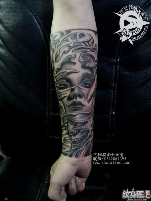 欧美花臂纹身_22张霸气黑灰欧美大黑花臂纹身图案作品图片