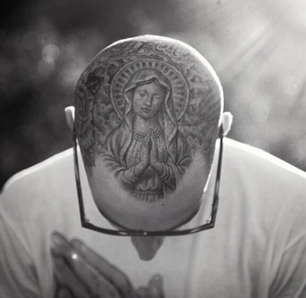 头部个性圣母玛利亚纹身图片