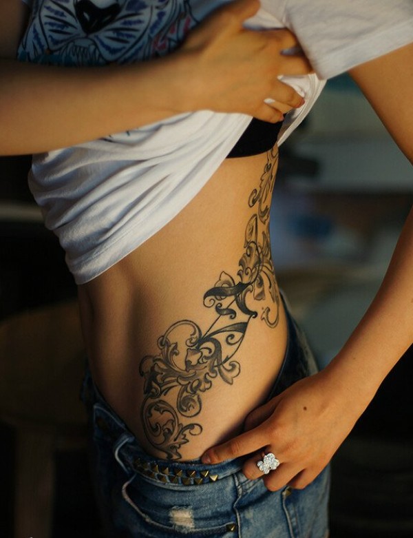 女性腰部莲花花纹刺青_腰部纹身图案大全_纹身图吧