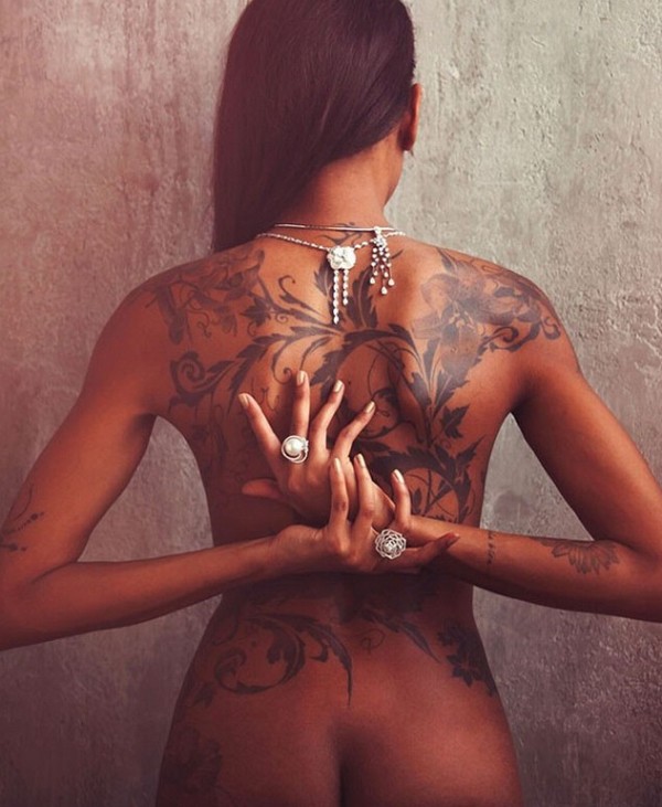 性感女生满背创意文身作品