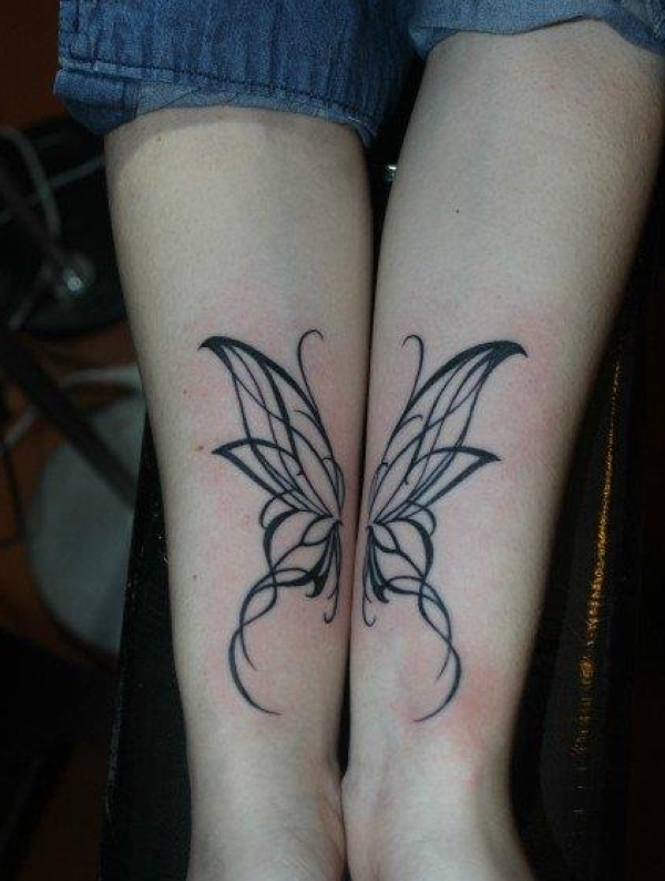 靓女手臂清晰精美的图腾蝴蝶纹身图案