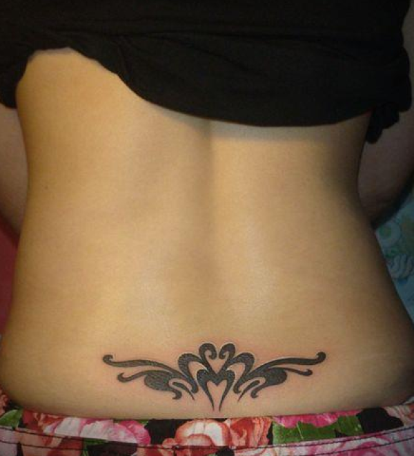 女生后腰纹身黑白灰风格抽象线条纹身图案