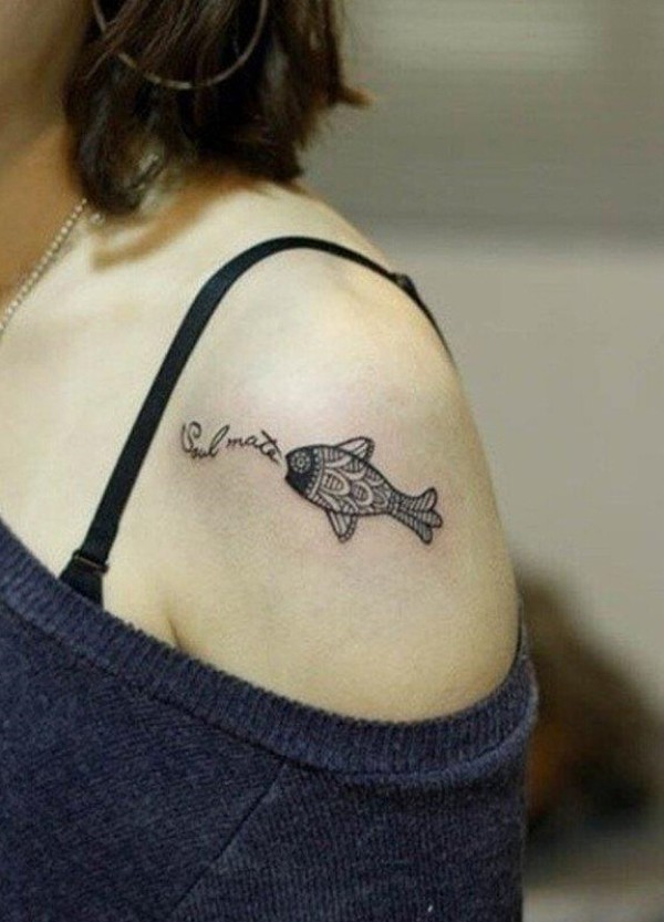女生肩背鱼纹身图案