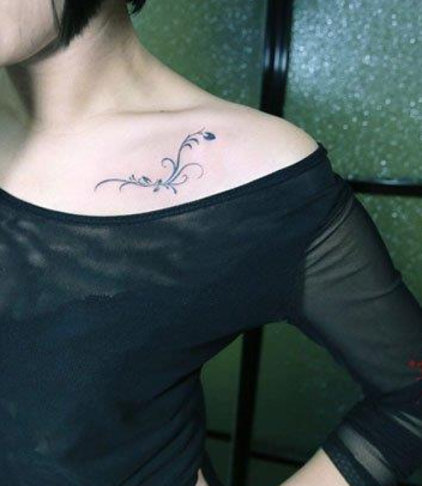靓女锁骨处乖巧是的图腾藤蔓纹身图案