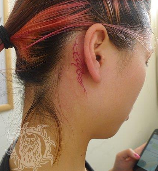 多款女生耳后黑色线条素描文艺小清新小图案纹身图案