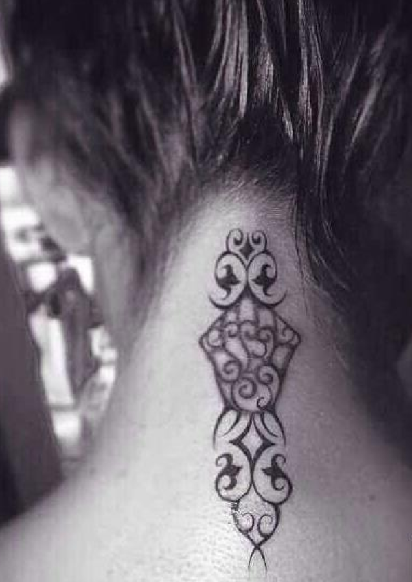 后颈部纹身小图--9张女生脖子后颈处的简约纹身图案