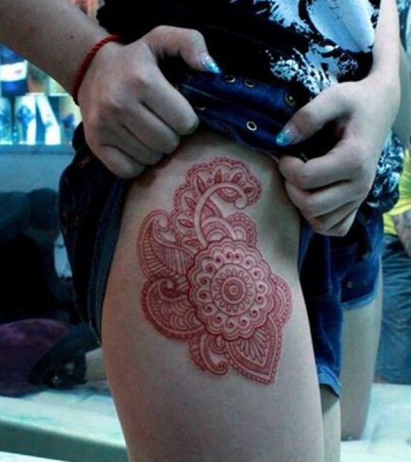 时尚女生腿部个性印度风格图腾纹身图