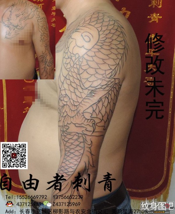 日式手彫刺青作品—半甲龙很感谢客户认可手彫刺青,手彫是日本纹身的手工雕刻技术,时间可以追溯到日本17世纪的江户时代。19世纪,手彫技术被日本黑帮挪用,被用作入会仪式,象征着从此就是江湖中人。在日式传统
