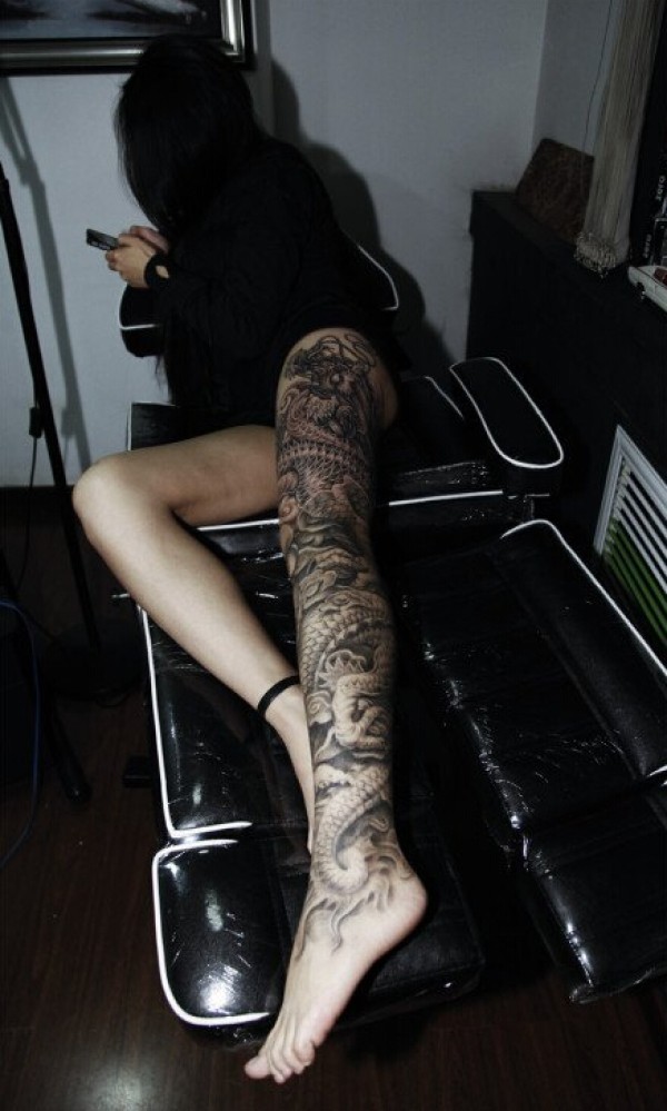花腿纹身--一组大黑腿纹身图案作品欣赏