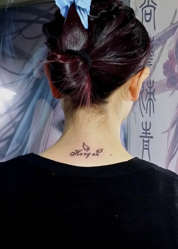后颈部纹身小图--9张女生脖子后颈处的简约纹身图案