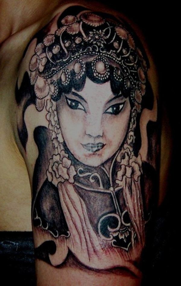 手臂唯美的花旦戏子纹身