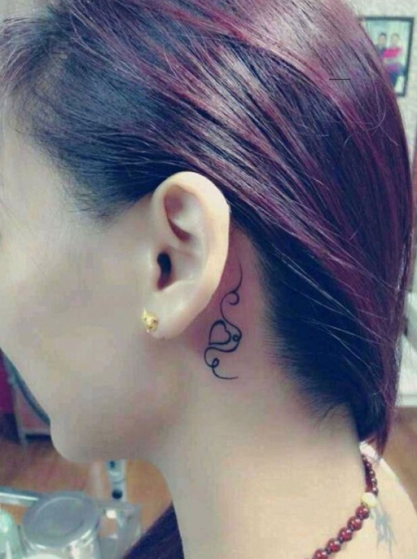 多款女生耳后黑色线条素描文艺小清新小图案纹身图案