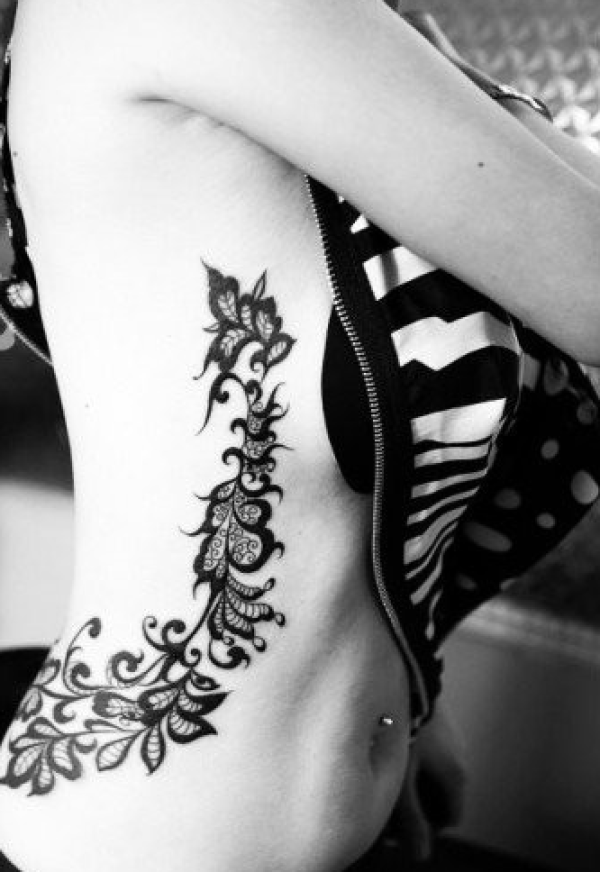 女性腰部莲花花纹刺青_腰部纹身图案大全_纹身图吧