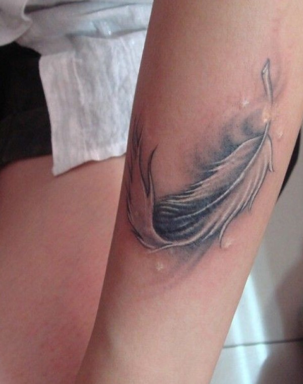 超唯美的手臂羽毛纹身