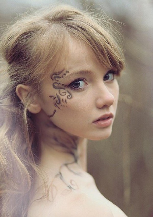 面部个性纹身花体英文字脸部传统风格纹身图案