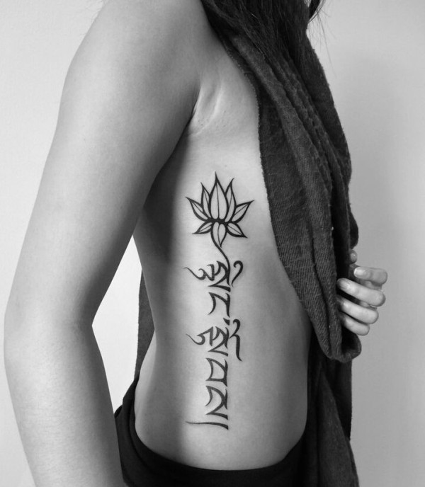 女性腰部莲花花纹刺青_腰部纹身图案大全_纹身图吧