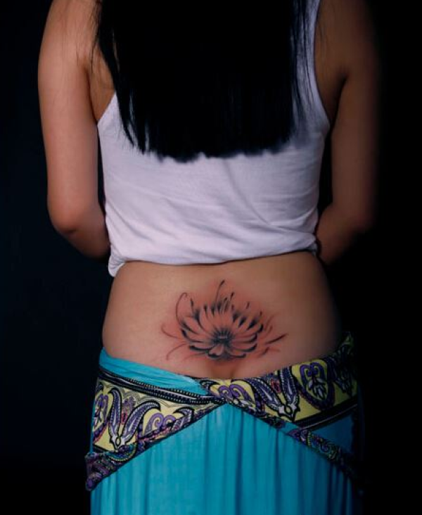 女性腰部莲花花纹刺青_腰部纹身图案大全_纹身图吧