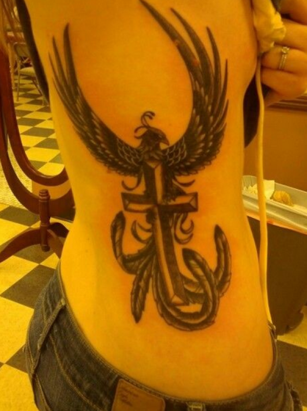 分享一款腰部时尚性感的蝶恋花纹身图案_腰部纹身图案大全_纹身图吧