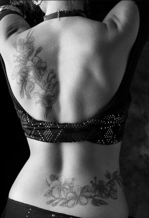 分享一款腰部时尚性感的蝶恋花纹身图案_腰部纹身图案大全_纹身图吧