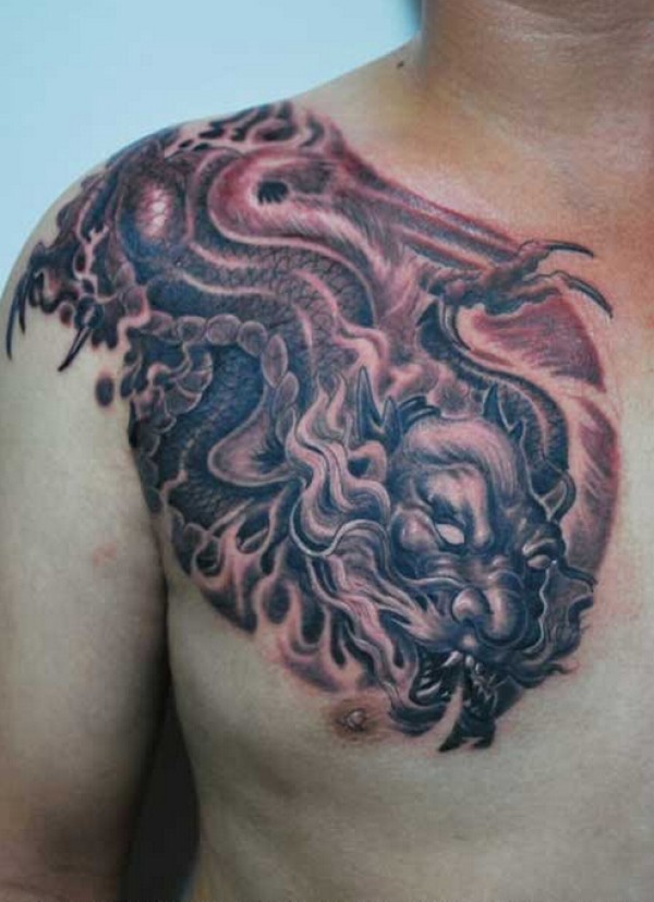 龙纹身手稿_一组老传统黑灰龙手稿纹身图案
