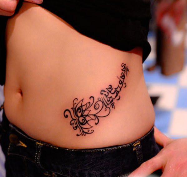 腰上莲花图腾梵文纹身