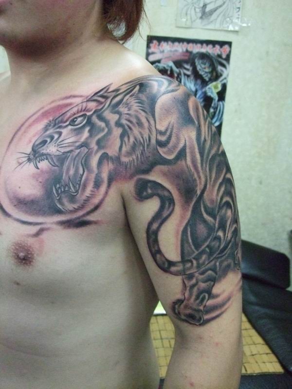霸气半胛老虎纹身_动物纹身图案大全_纹身图吧