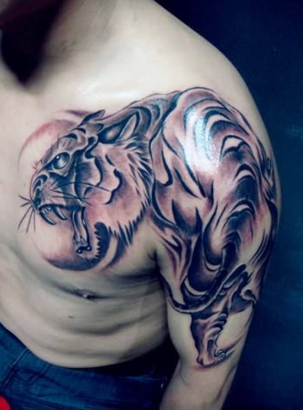 霸气半胛老虎纹身_动物纹身图案大全_纹身图吧
