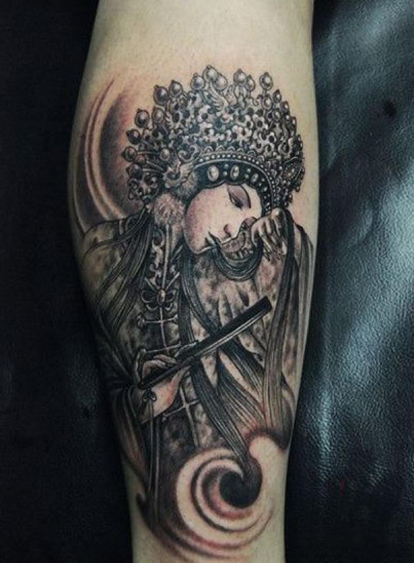 传统花腿纹身--18张传统风格的大花腿纹身图案作品