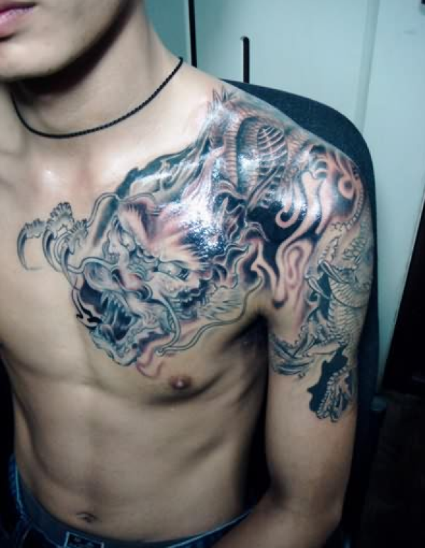 日式手彫刺青作品—半甲龙很感谢客户认可手彫刺青,手彫是日本纹身的手工雕刻技术,时间可以追溯到日本17世纪的江户时代。19世纪,手彫技术被日本黑帮挪用,被用作入会仪式,象征着从此就是江湖中人。在日式传统