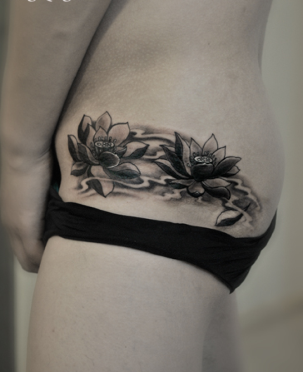 女性腰部莲花花纹刺青_腰部纹身图案大全_纹身图吧