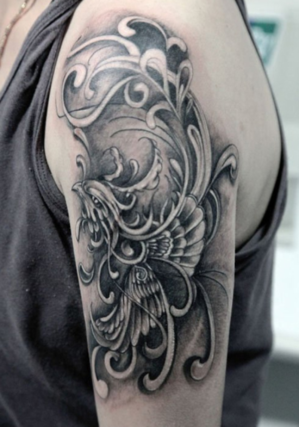 手臂黑灰凤凰纹身图案