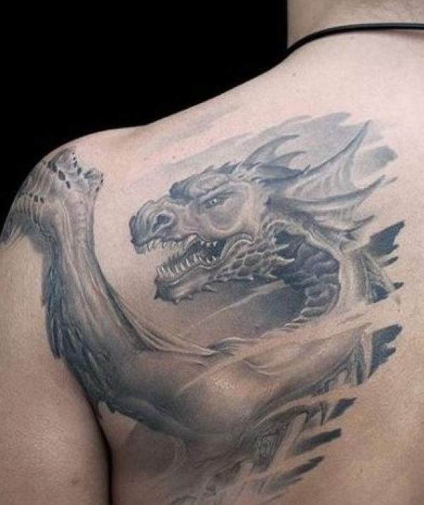 龙纹身手稿_一组老传统黑灰龙手稿纹身图案