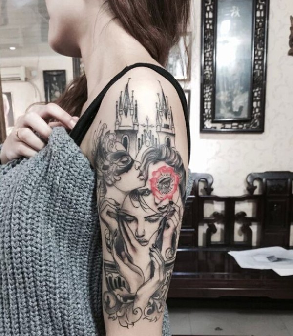 女性人物纹身图案 男生大臂纹身女性人物纹身图案