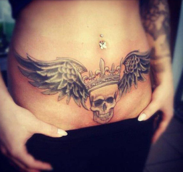 美女腹部时尚很酷的骷髅翅膀纹身图案