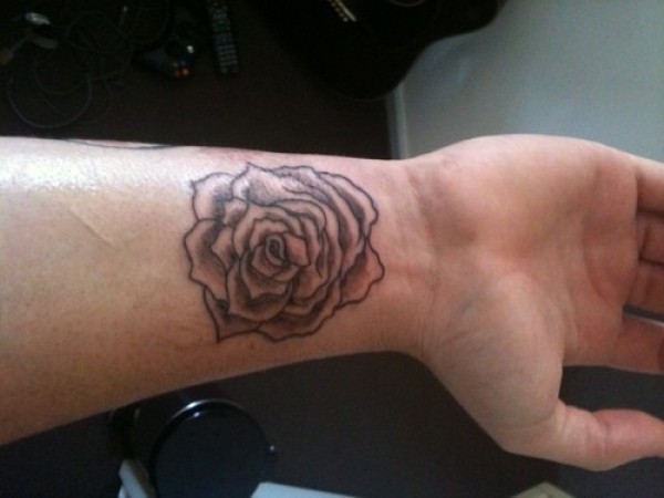 手腕黑灰玫瑰纹身图案