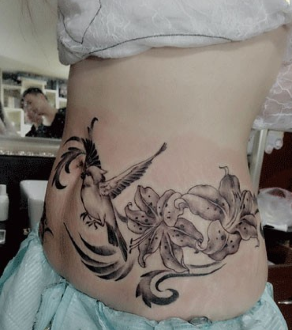 女生腰部鸟雀纹身