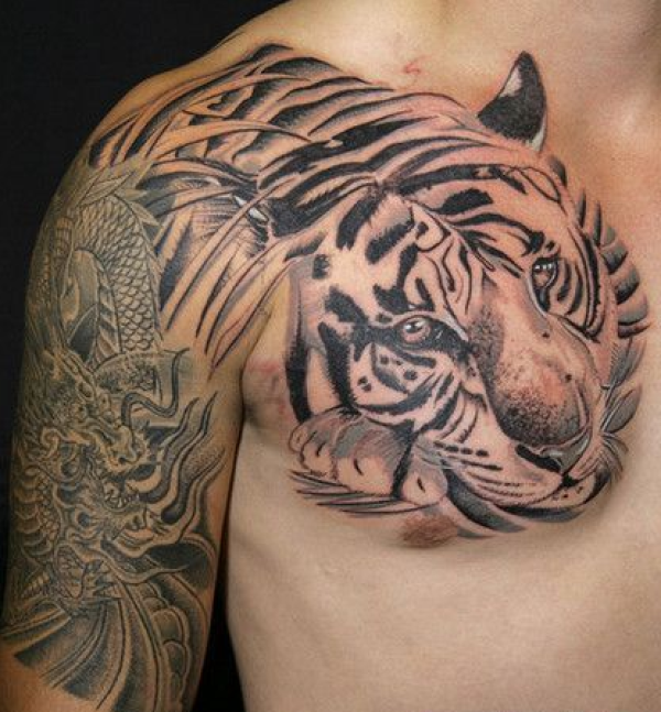 霸气半胛老虎纹身_动物纹身图案大全_纹身图吧