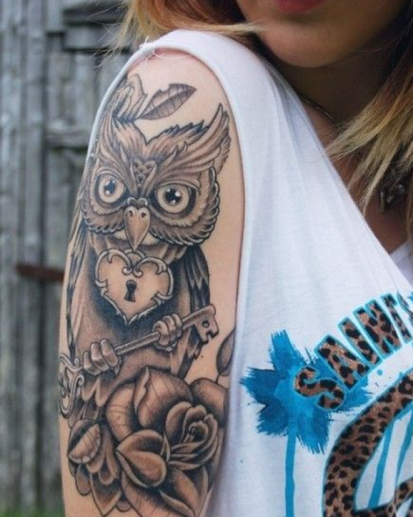 手臂个性猫头鹰纹身