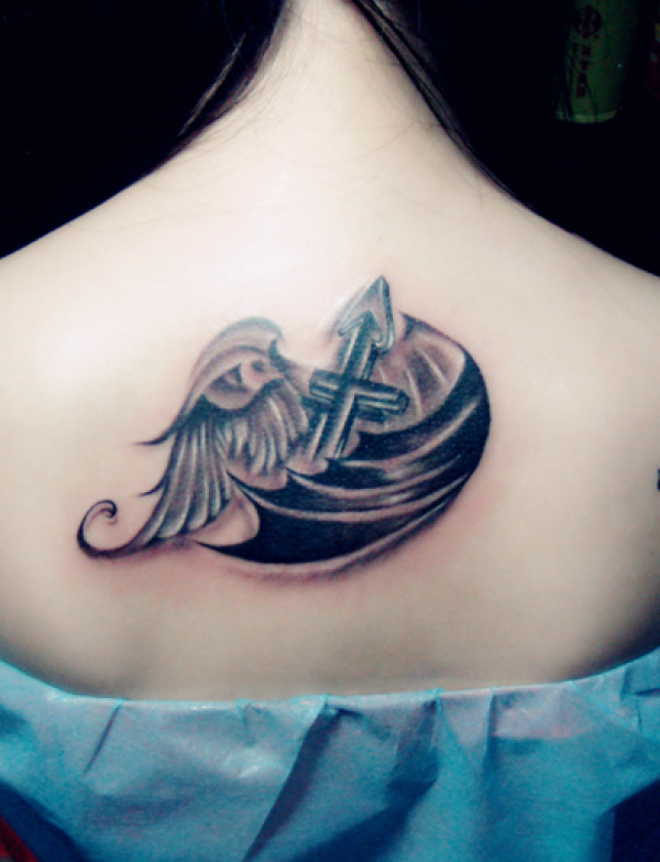 后背翅膀十字架纹身图案