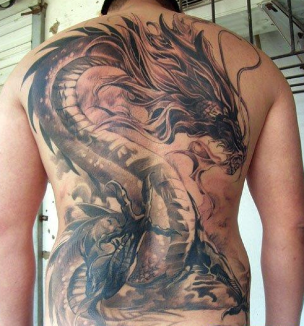 龙纹身手稿_一组老传统黑灰龙手稿纹身图案