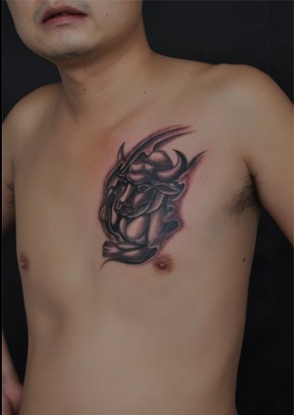 牛头刺青胸前牛头纹身图片_胸部纹身图案大全_纹身图吧