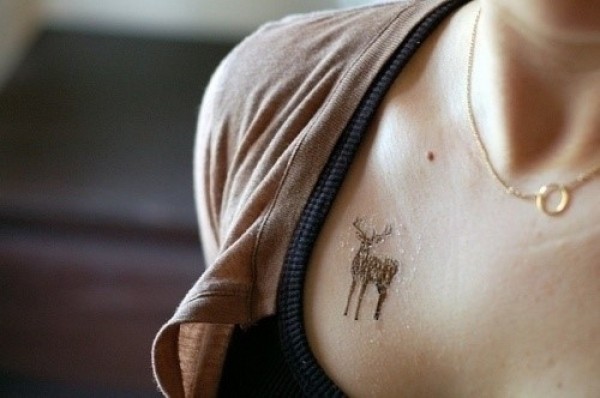 女性胸部可爱小鹿刺青_胸部纹身图案大全_纹身图吧