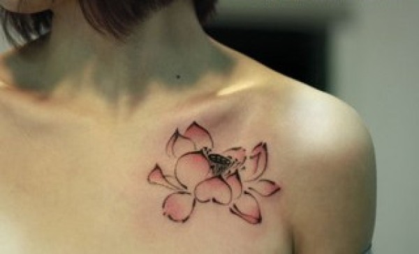 女性胸前莲花刺青师_胸部纹身图案大全_纹身图吧