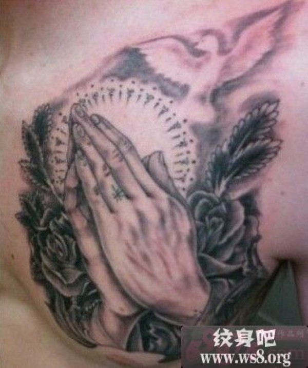 胸部虔诚的祈祷刺青图案图案_胸部纹身图案大全_纹身图吧