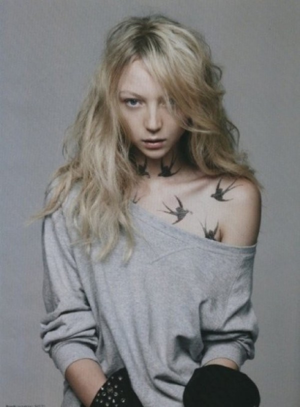 女人胸前飞鸟刺青_胸部纹身图案大全_纹身图吧